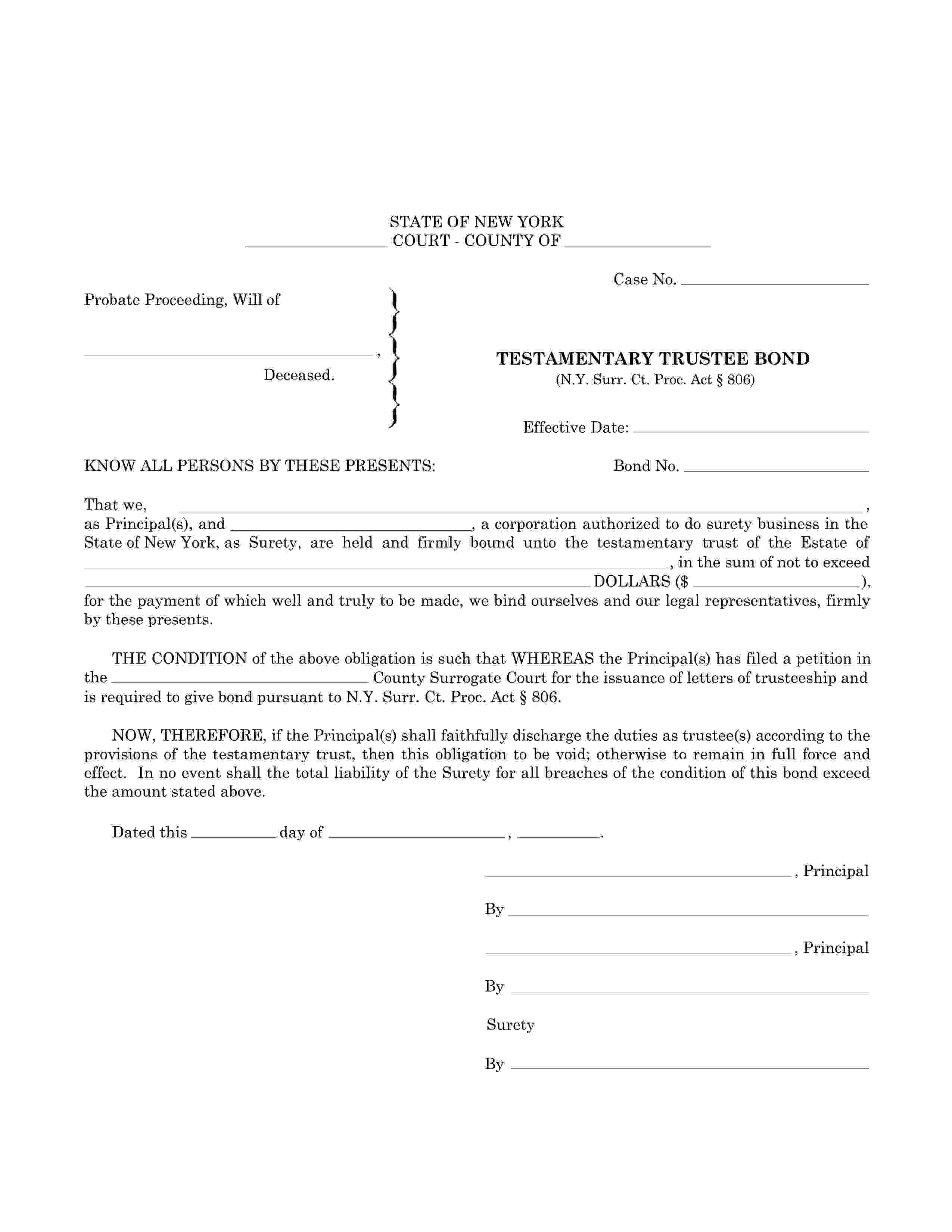 Testamentary Trustee Bond