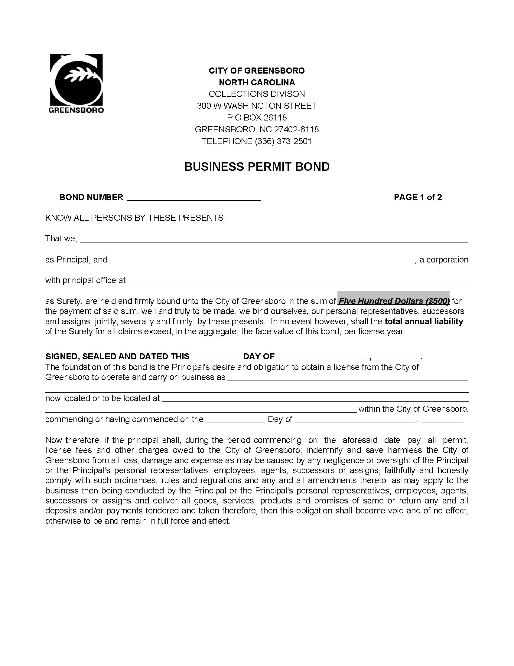 City of Greensboro Business Permit Bond