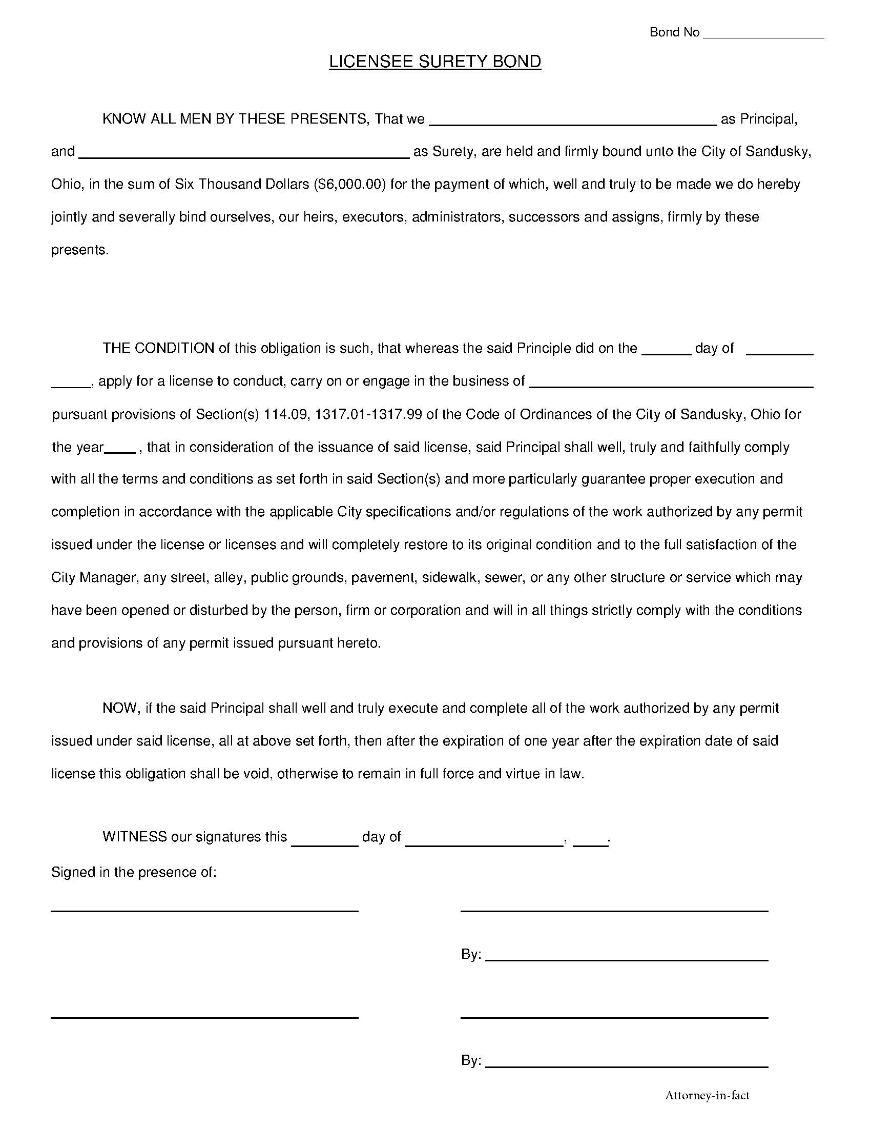 City of Sandusky Contractor Registration Bond