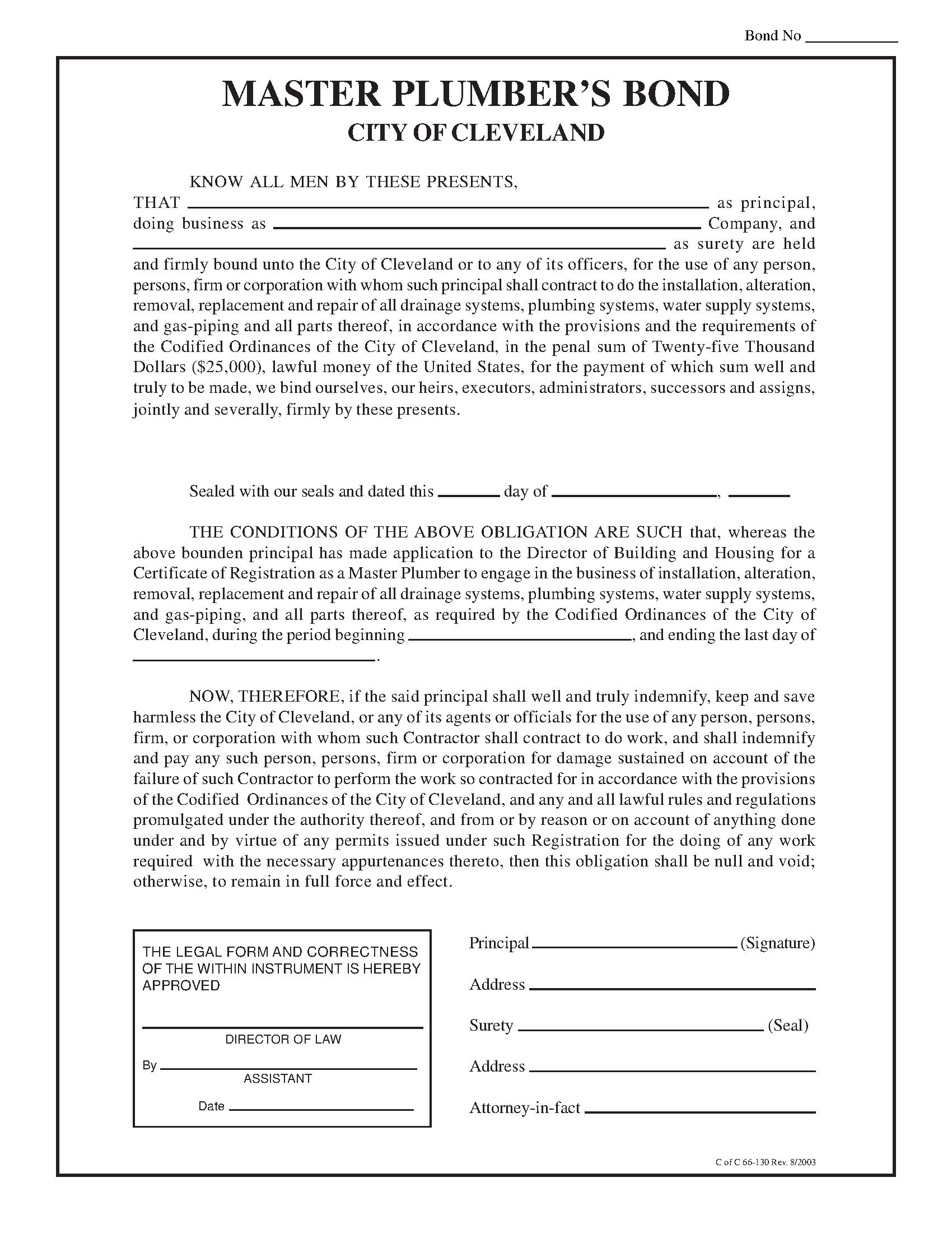 City of Cleveland Master Plumber Bond