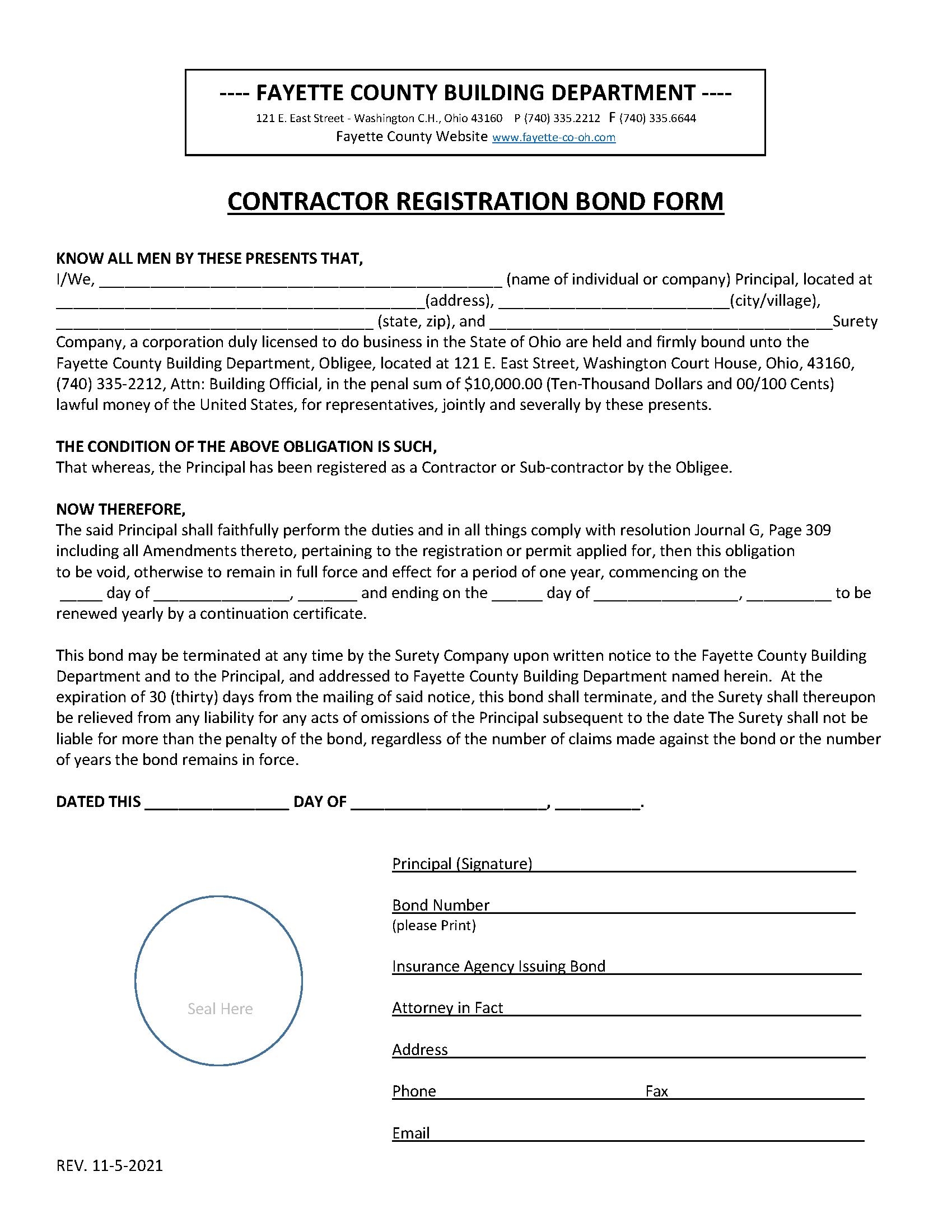 Fayette County Contractor Registration Bond