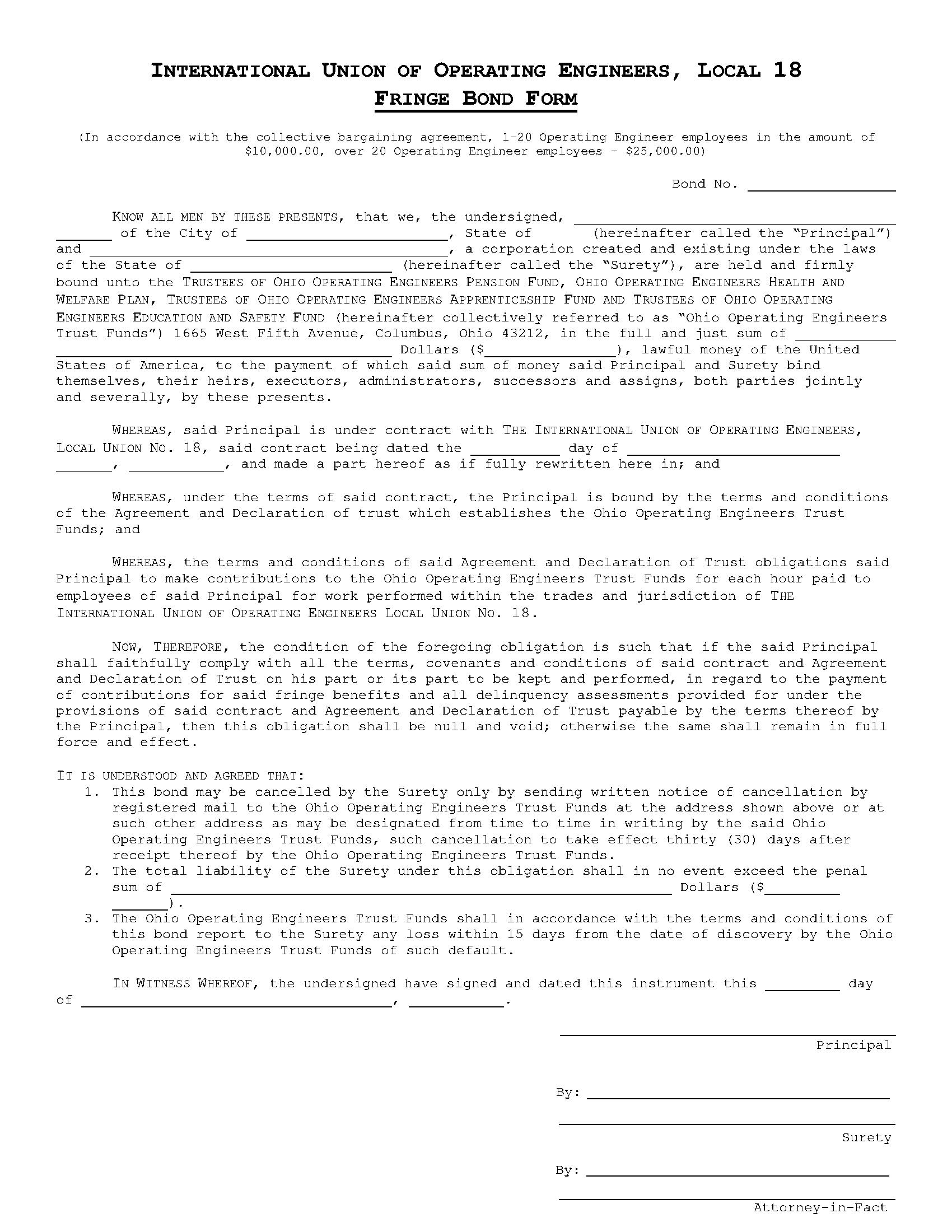 International Union of Operating Engineers, Local 18 Fringe Benefit Bond