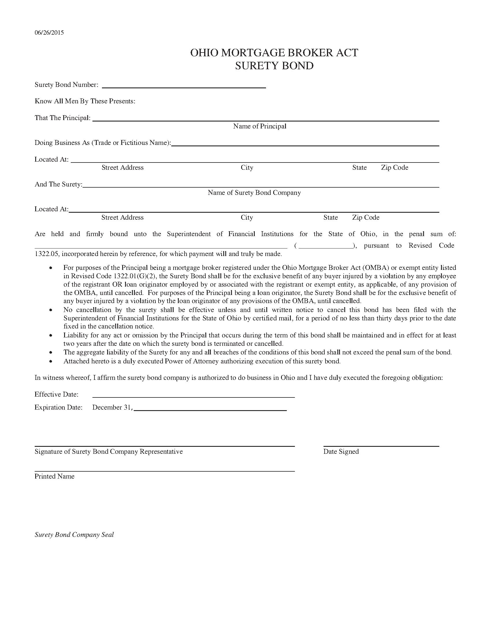 State of Ohio Mortgage Broker Bond
