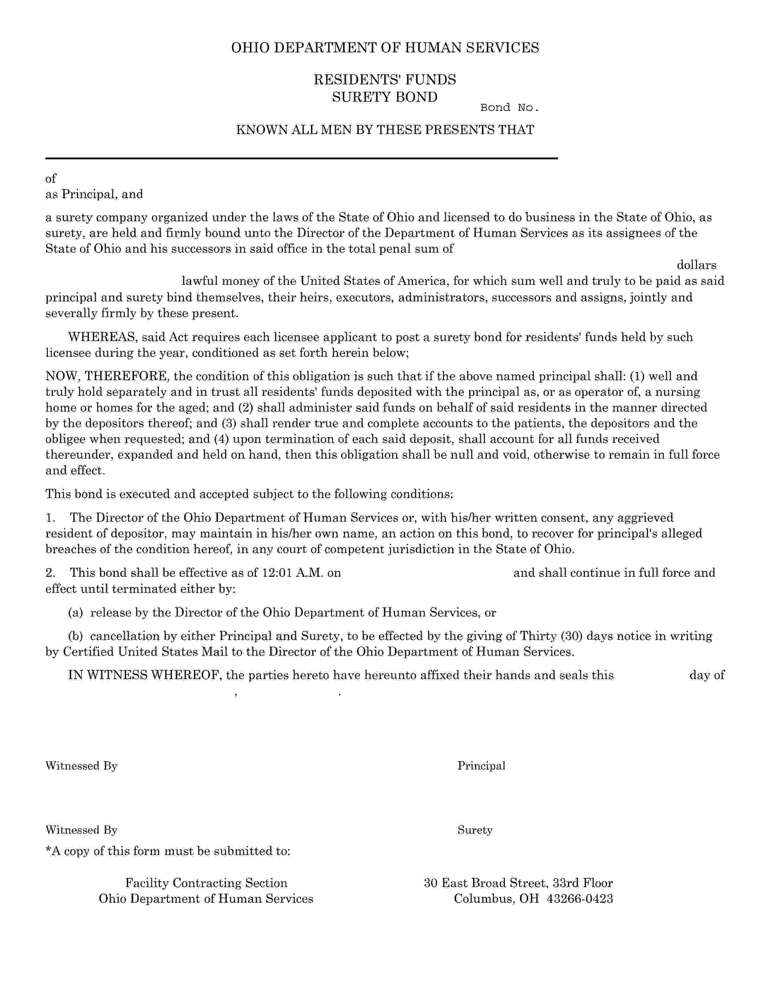 The Ohio Nursing Facility Residents Fund Bond starts at $100 plus shipping costs and fees. Fill out the form to buy your bond instantly!