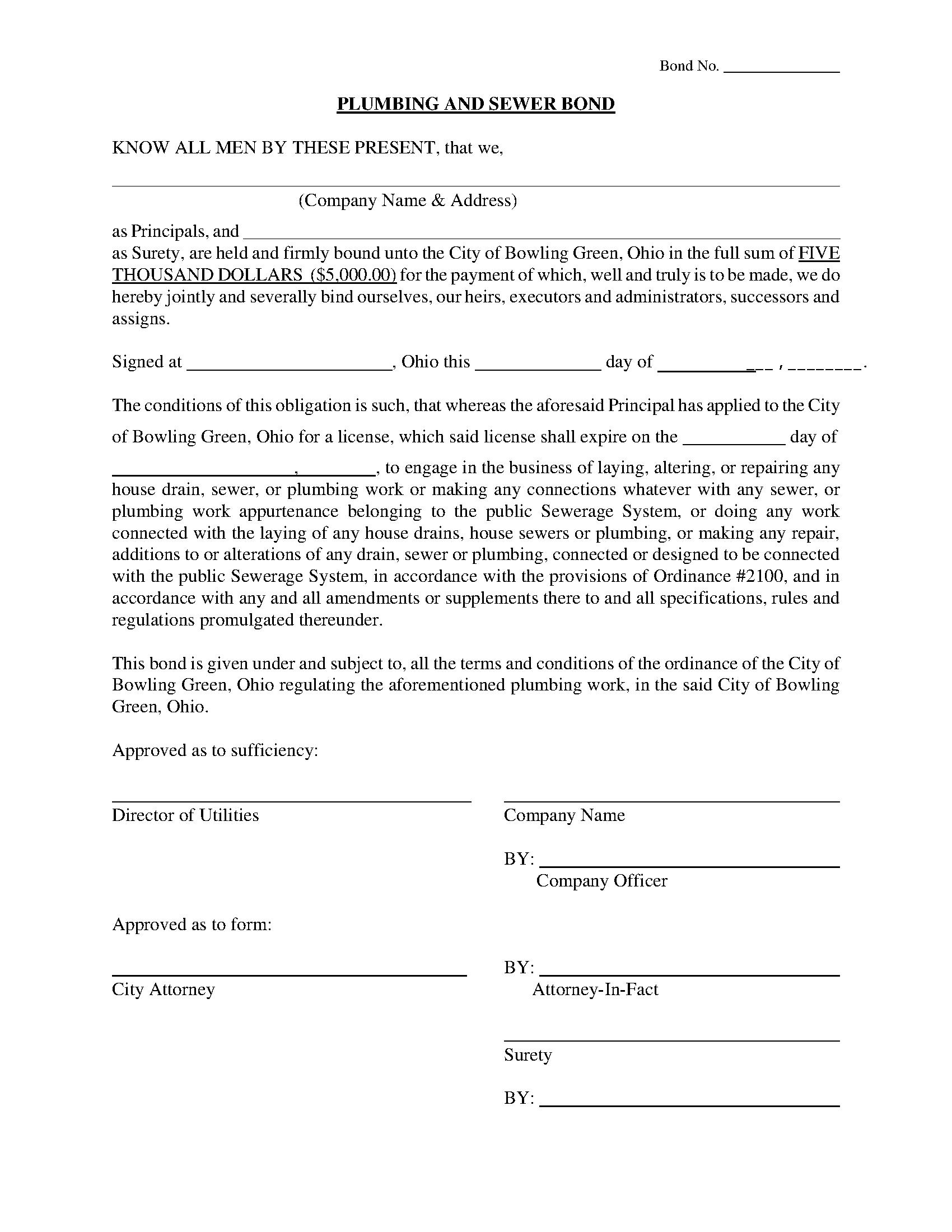 City of Bowling Green Plumber and Sewer Bond
