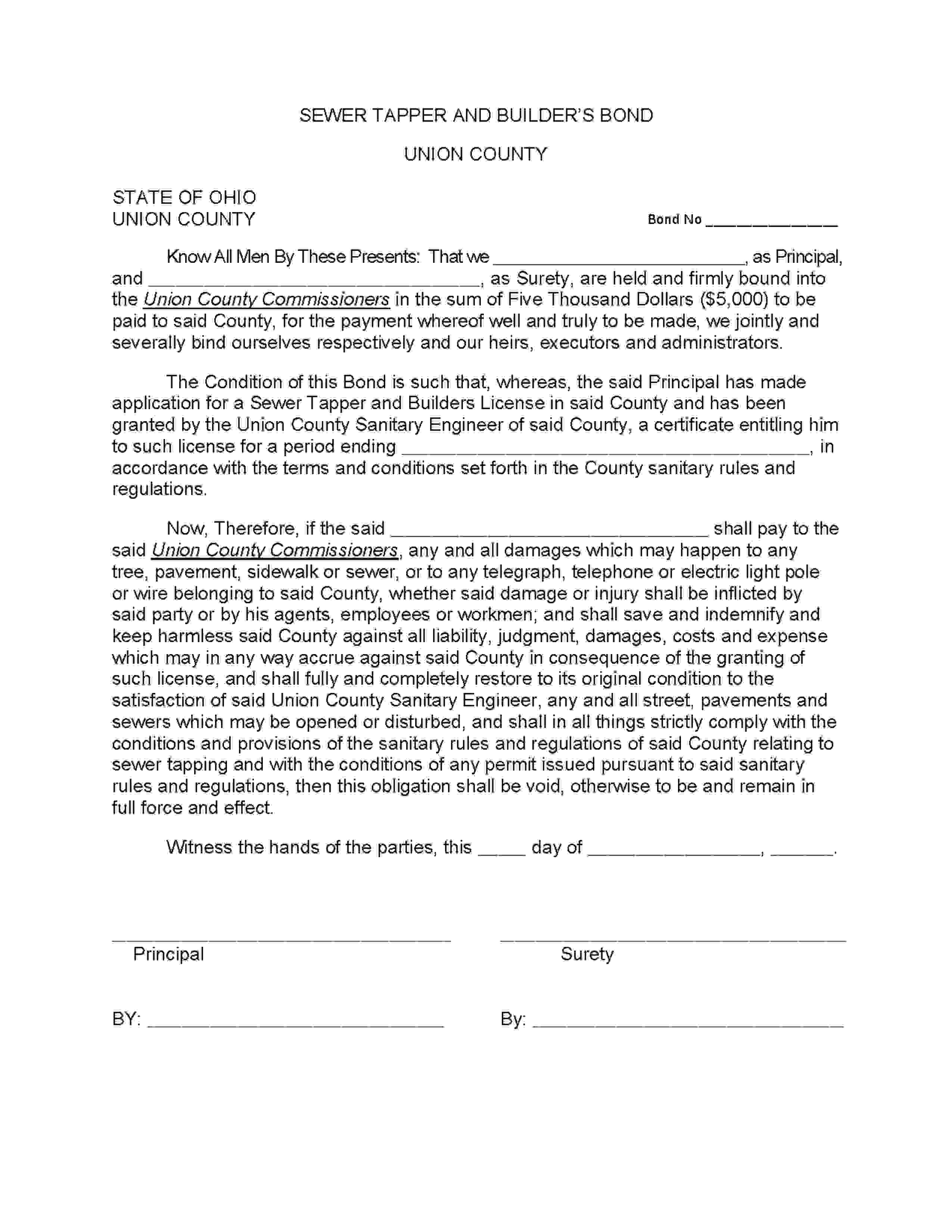 Union - County Sewer Tapper and Builder Bond
