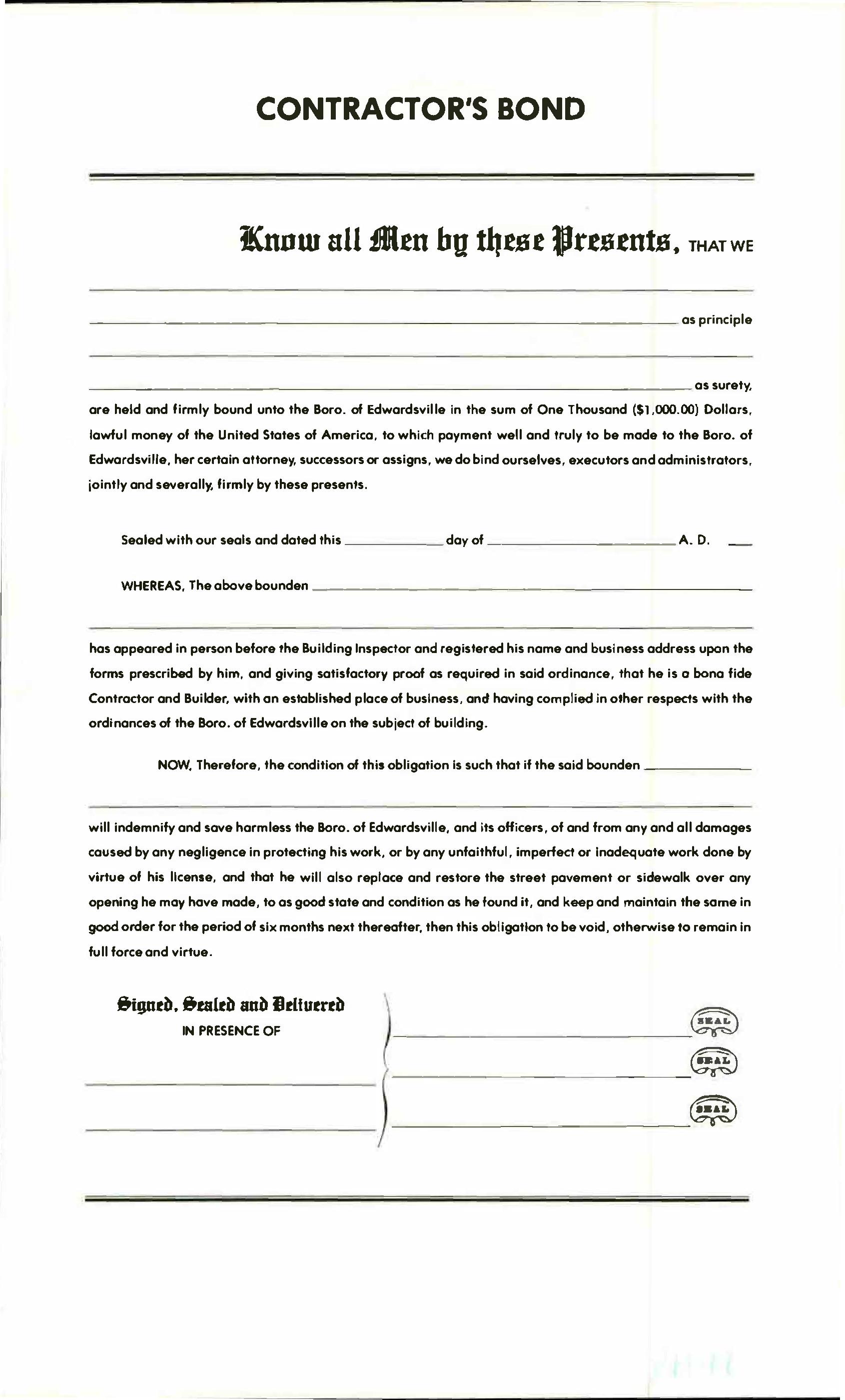 Edwardsville Borough Contractor's License Bond
