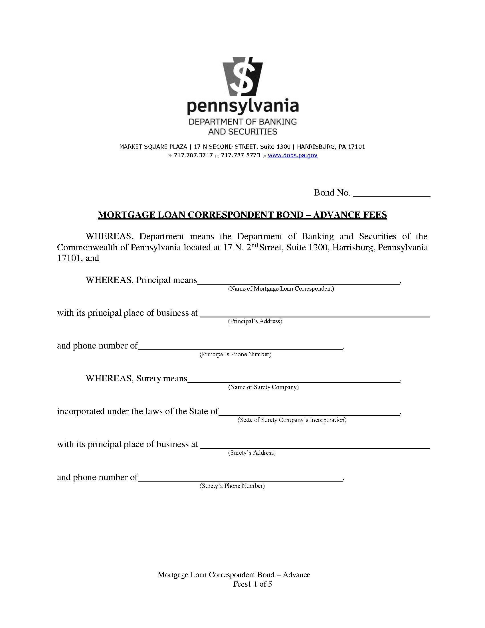 The Pennsylvania Mortgage Loan Correspondent Bond starts at $1000 plus shipping costs and fees. Fill out the form to buy your bond instantly!