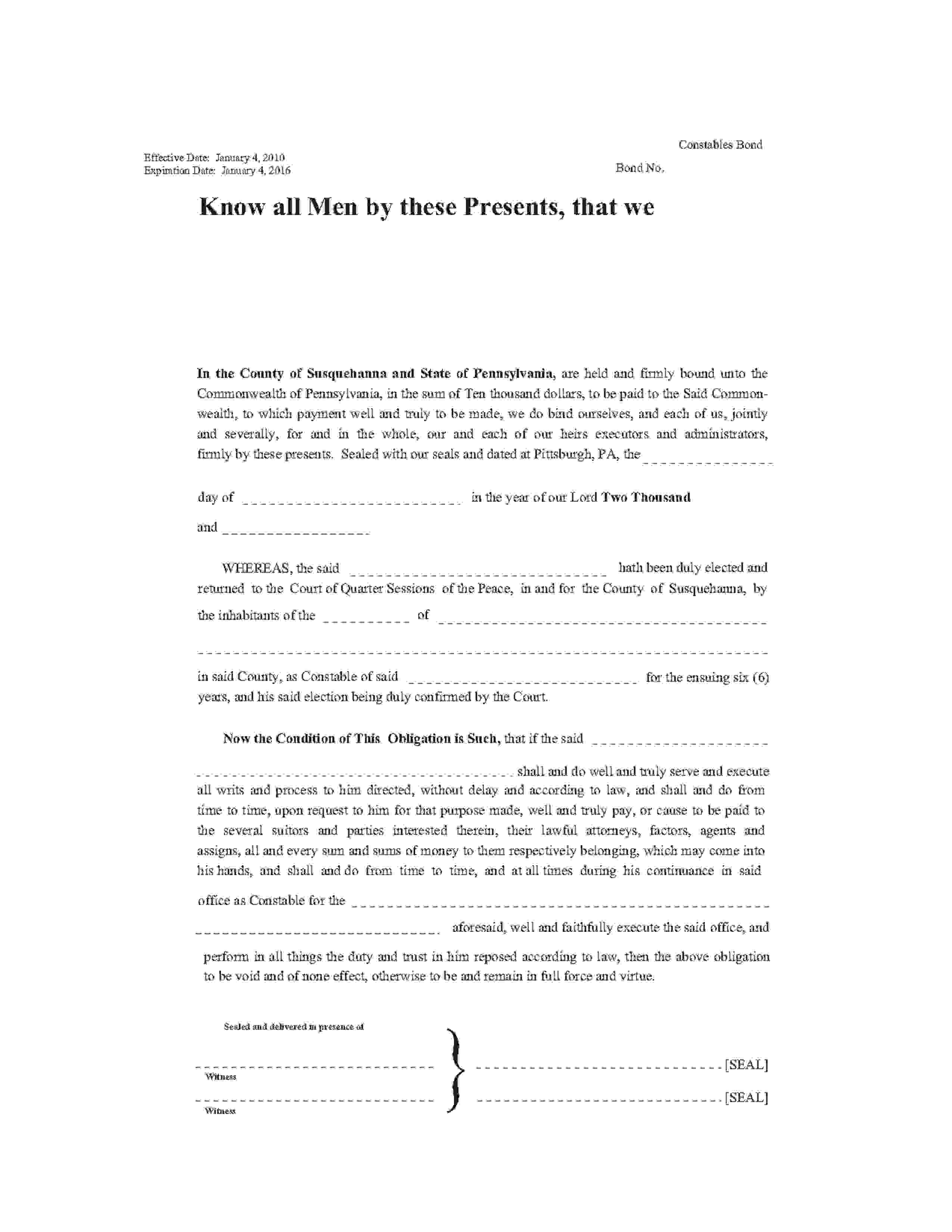 Commonwealth of Pennsylvania - Susquehanna County Constable Bond