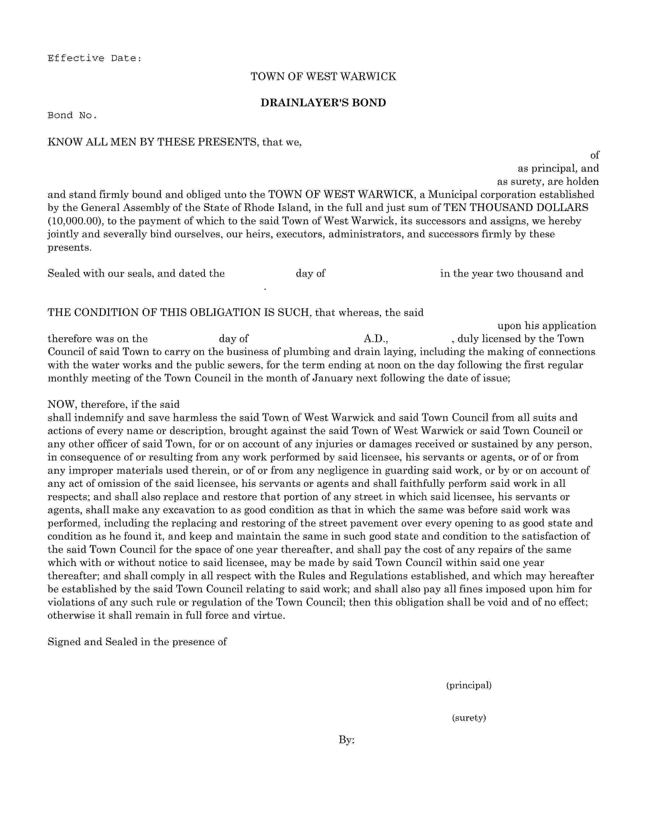 West Warwick - Township Drainlayer Bond