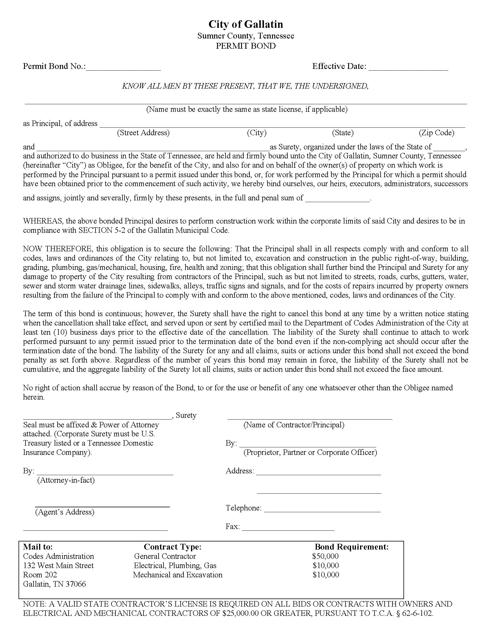 City of Goodlettsville General Contractor Bond
