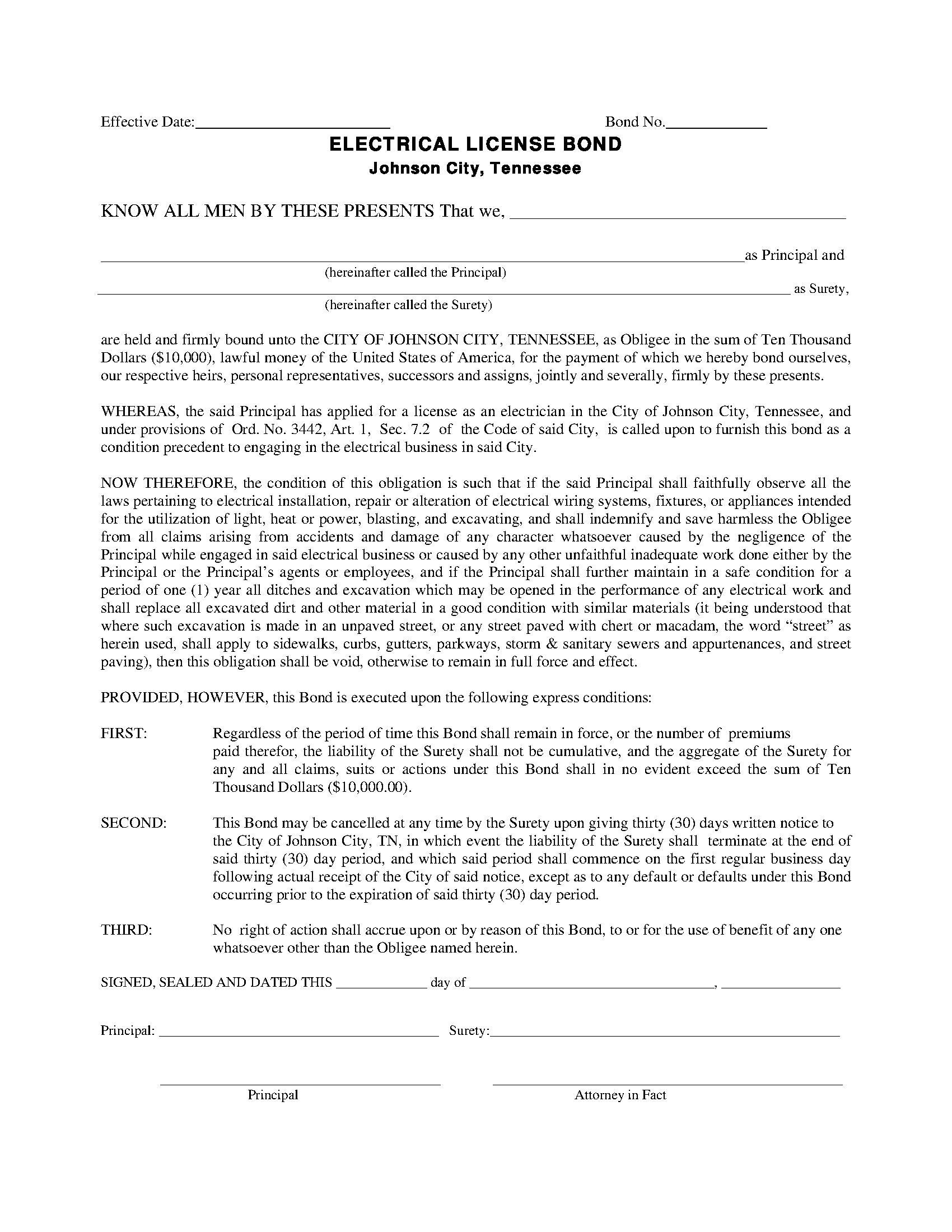 City of Johnson City Electrical Contractor Bond