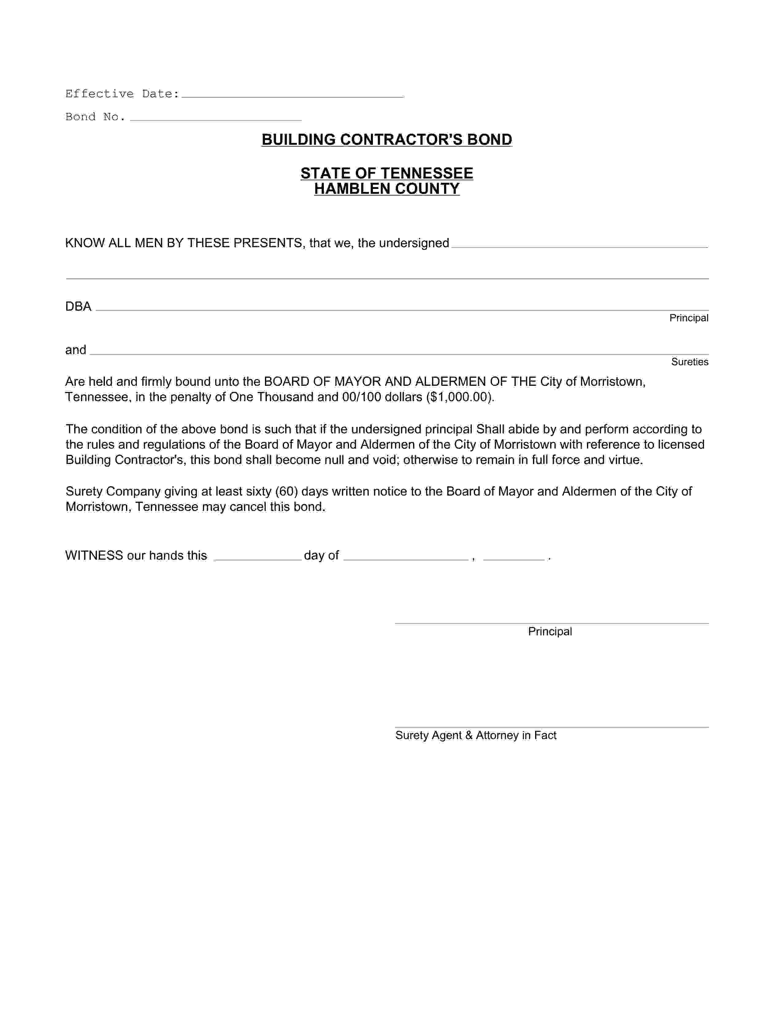 City of Morristown Building Contractor Bond