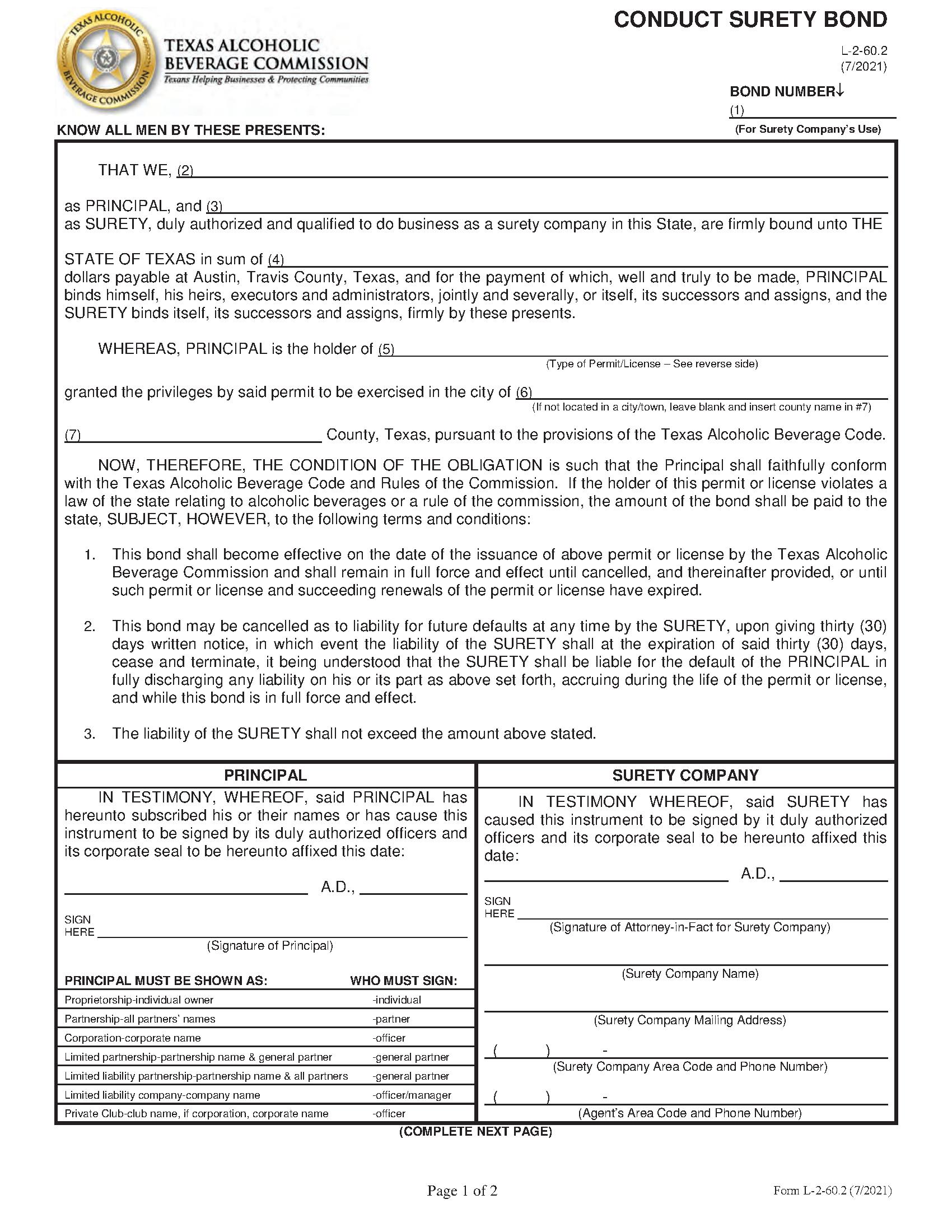 State of Texas Conduct Surety Bond