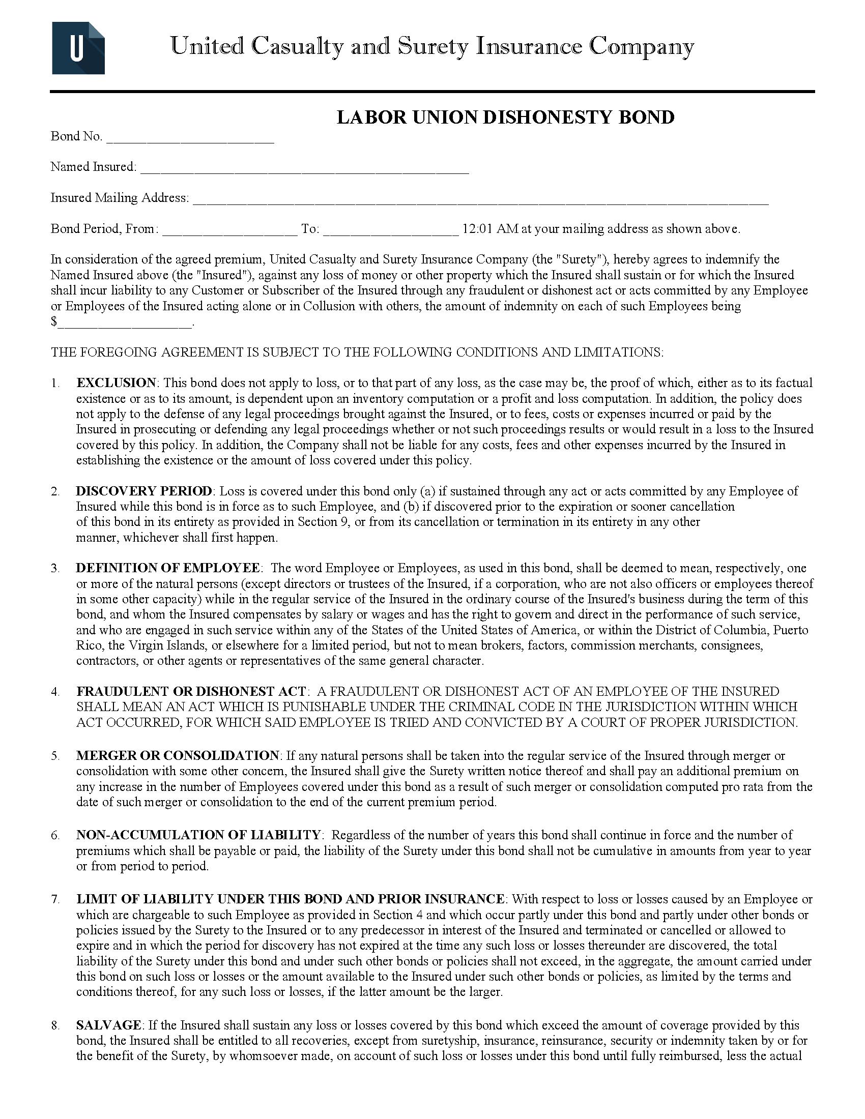 The NALC Program Only - Labor Union Dishonesty Bond starts at $85 plus shipping costs and fees. Fill out the form to buy your bond instantly!