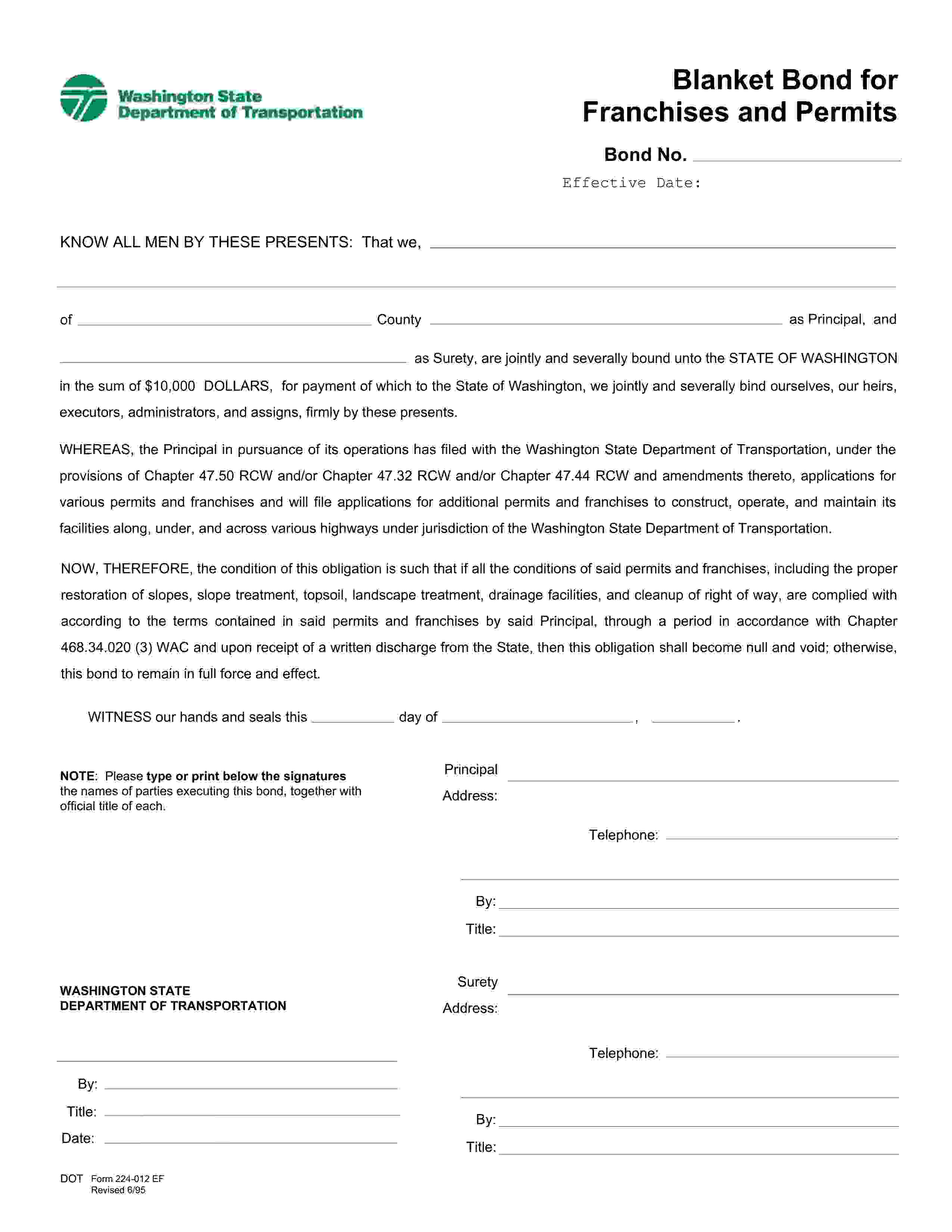 The Washington Highway Permit Blanket Bond starts at $200 plus shipping costs and fees. Fill out the form to buy your bond instantly!