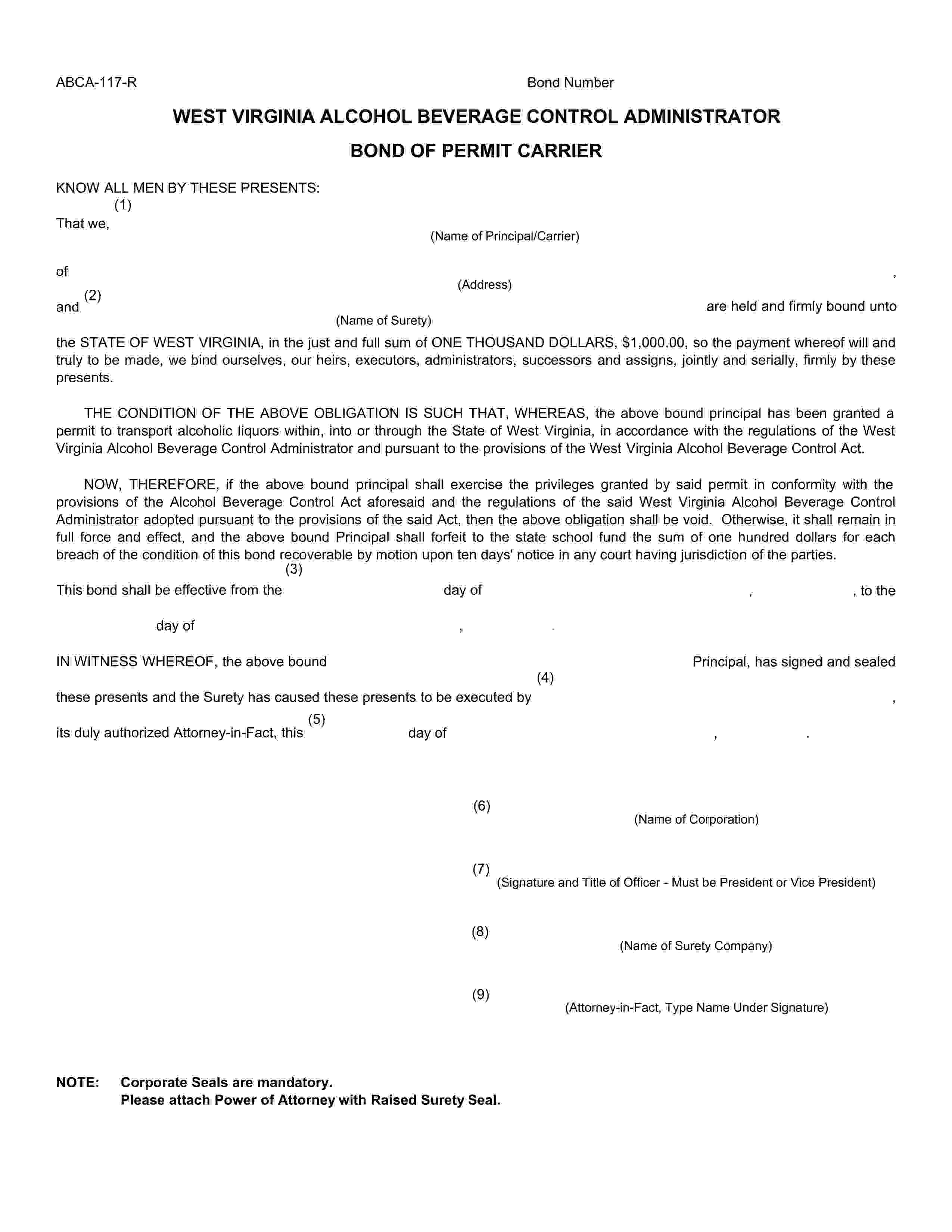 Liquor Transport Permit Carrier Bond