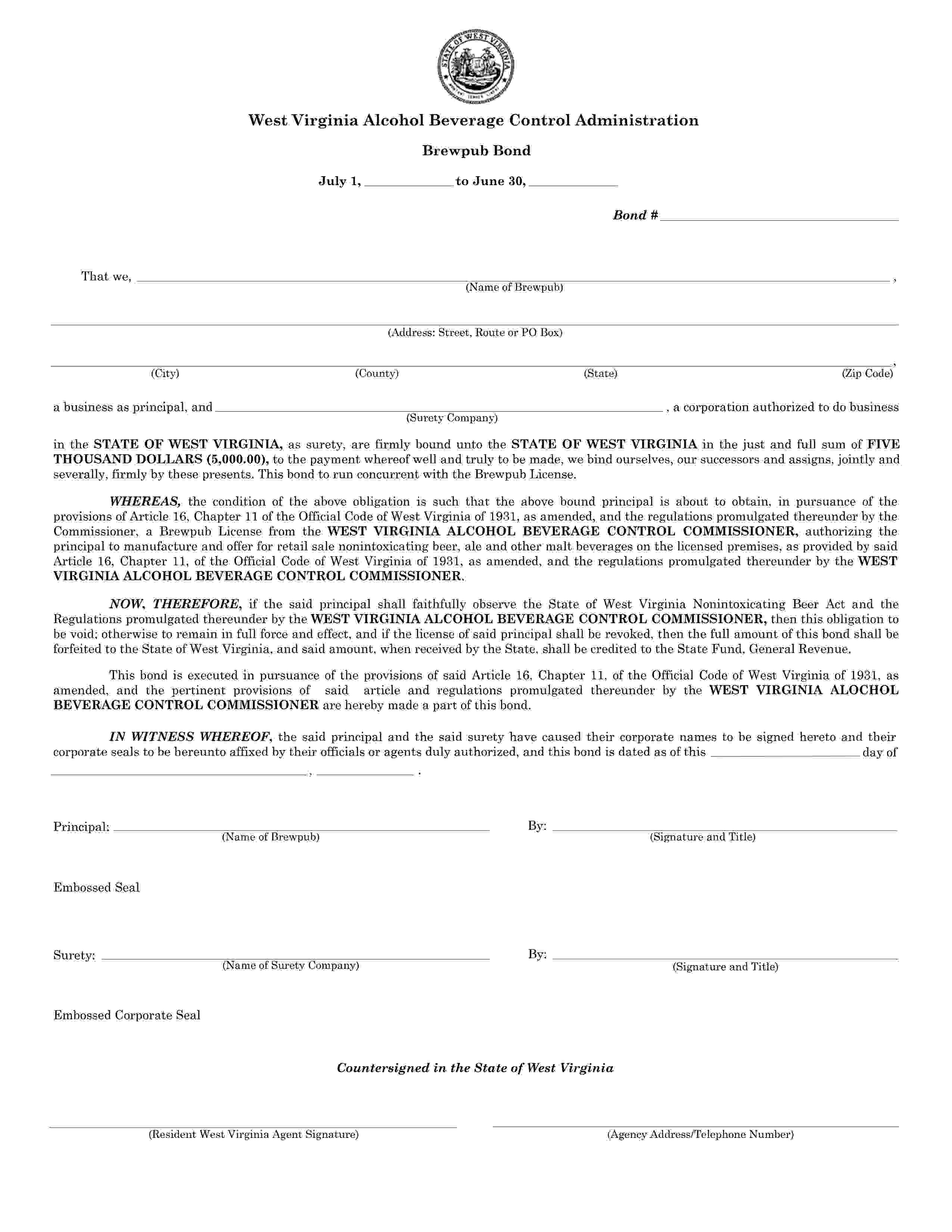 The West Virginia Brewpub Bond starts at $100 plus shipping costs and fees. Fill out the form to buy your bond instantly!
