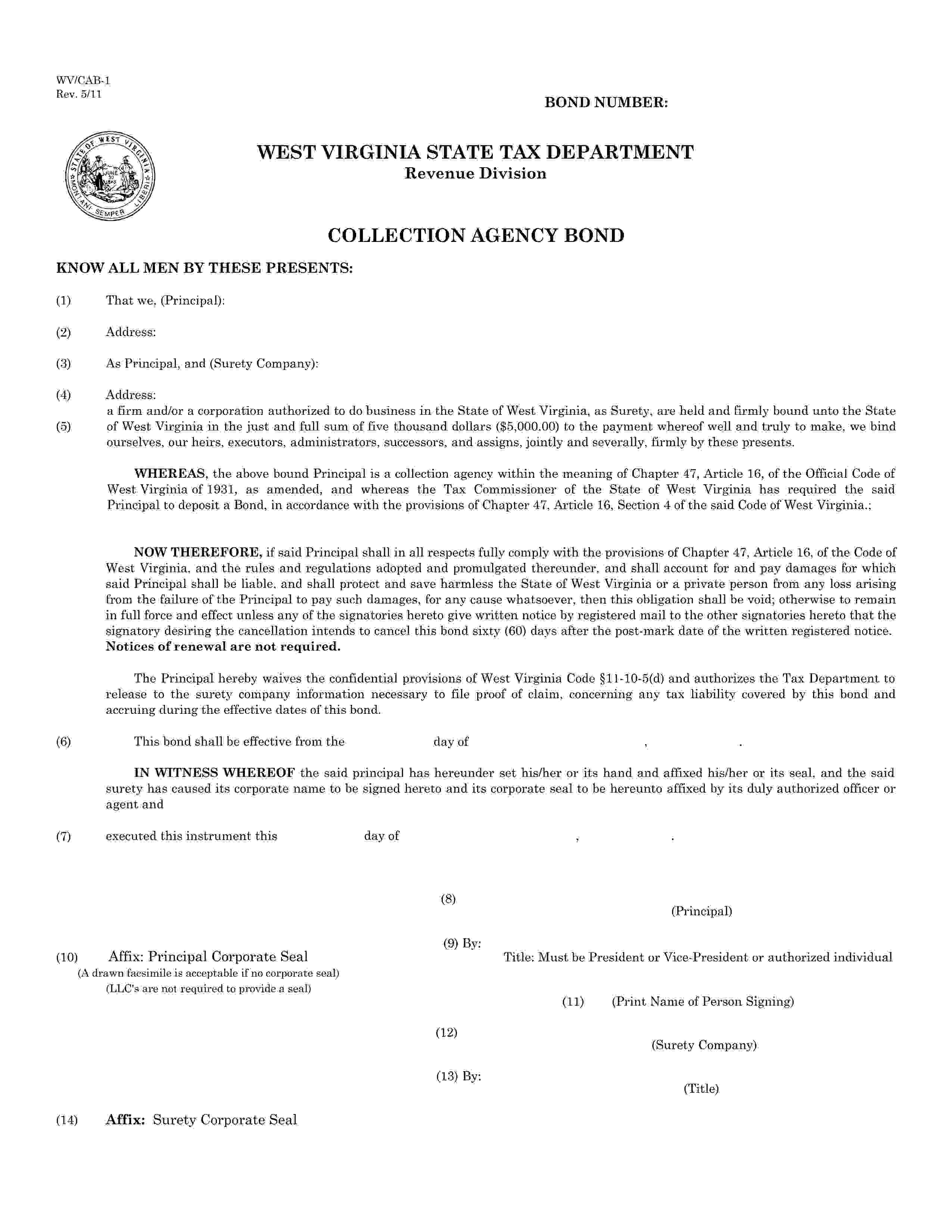 State of West Virginia Collection Agency Bond