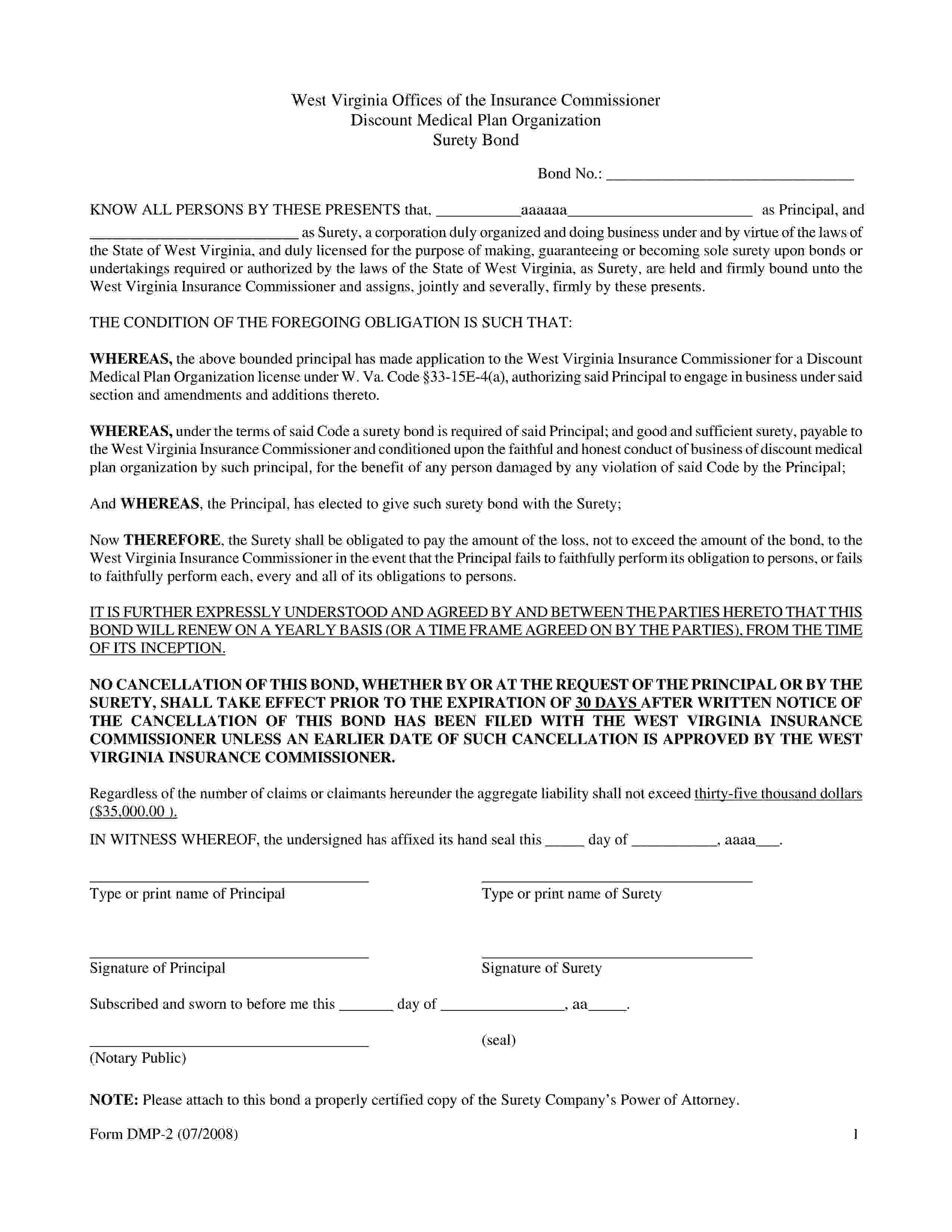 The West Virginia Discount Medical Plan Organization Bond starts at $350 plus shipping costs and fees. Fill out the form to buy your bond instantly!