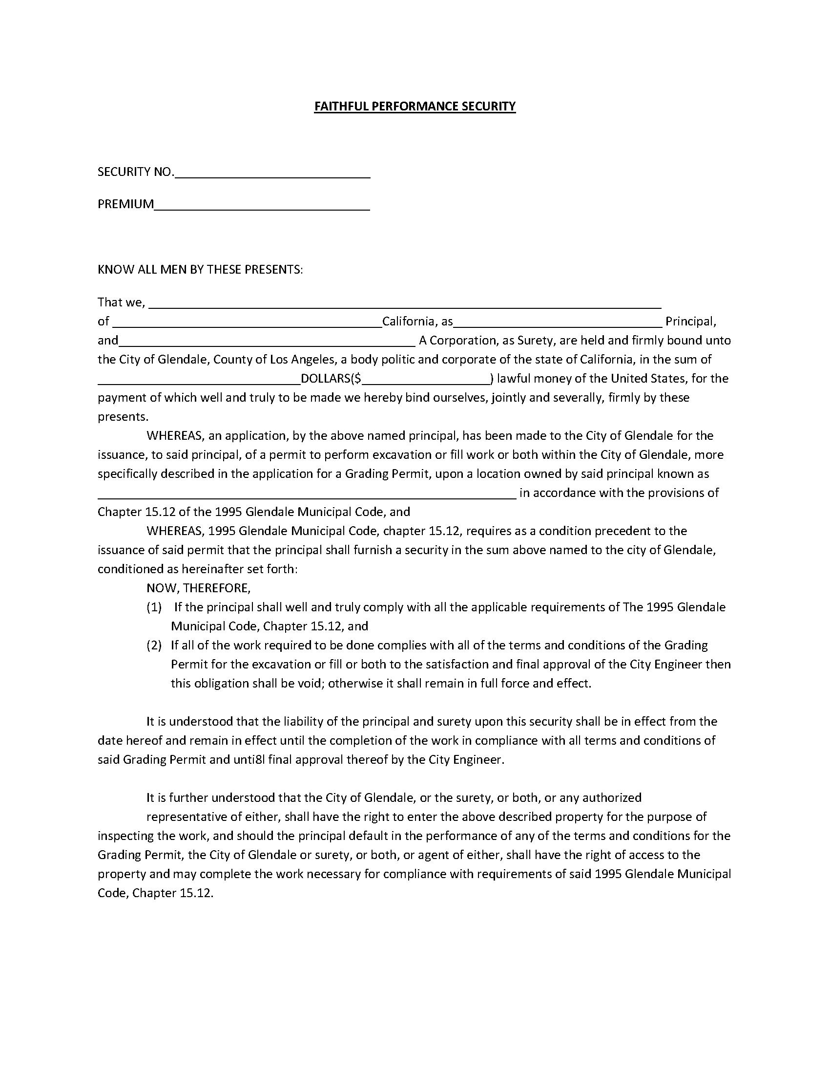 The California City of Glendale Grading Permit Bond starts at $100 plus shipping costs and fees. Fill out the form to buy your bond instantly!