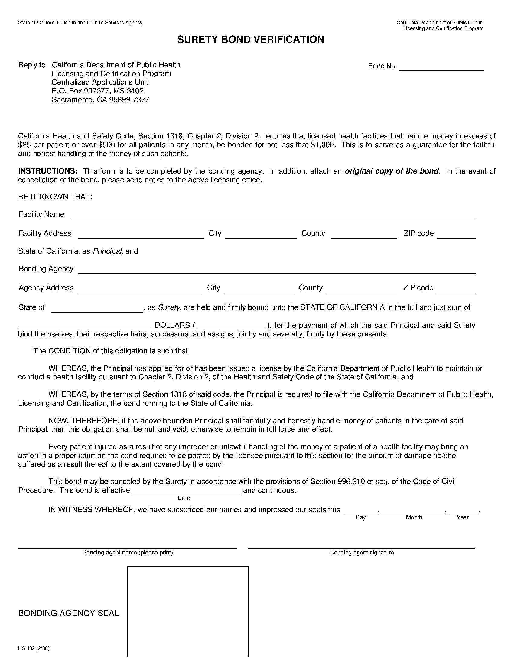 The California Health Facility Patient Trust Fund Bond starts at $100 plus shipping costs and fees. Fill out the form to buy your bond instantly!