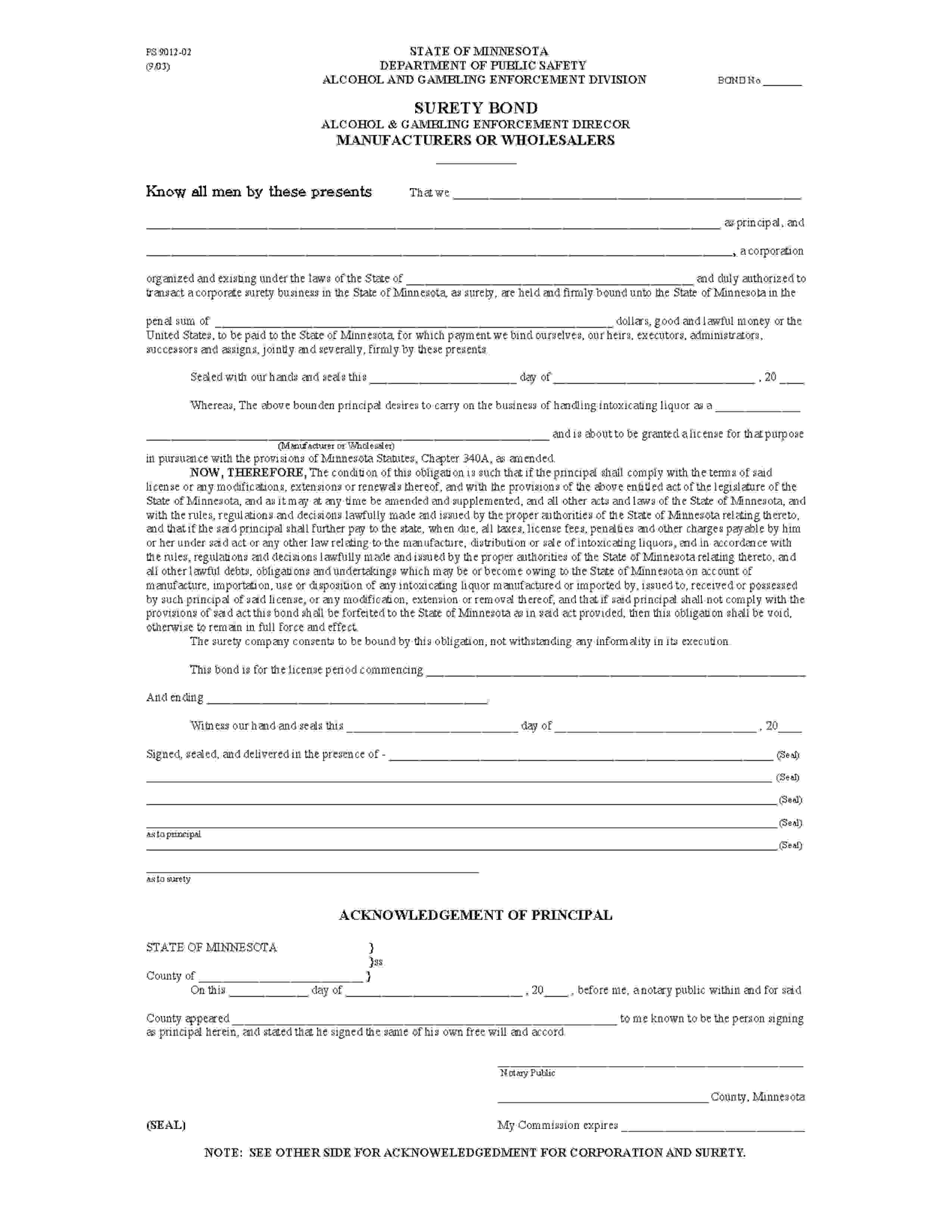 The Minnesota Alcohol Manufacturer Bond starts at $100 plus shipping costs and fees. Fill out the form to buy your bond instantly!