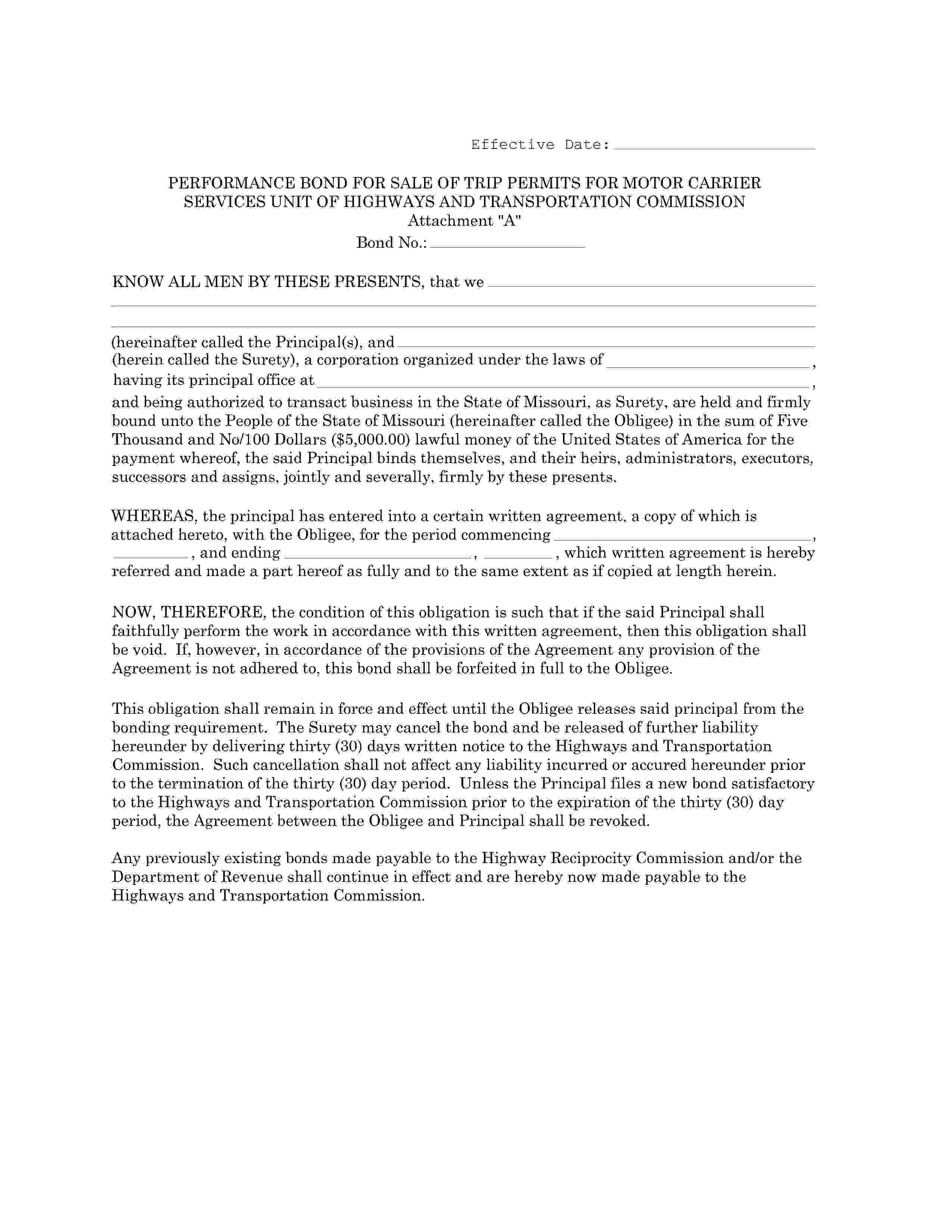 The Missouri Sale of Trip Permits for Motor Carrier Services Bond starts at $100 plus shipping costs and fees. Fill out the form to buy your bond instantly!