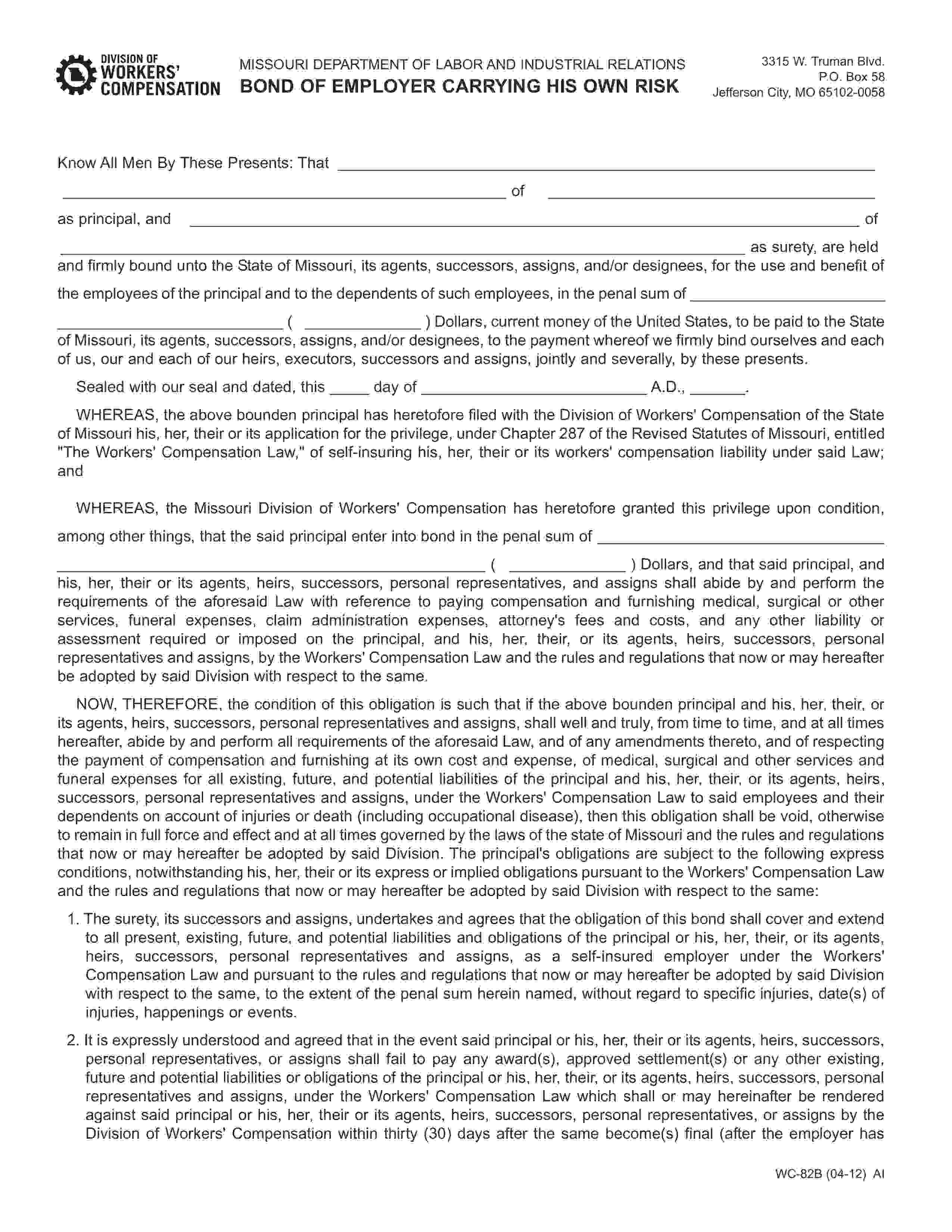 Fill out the form to buy your Missouri Self-Insurer of Workers Compensation Bond instantly!