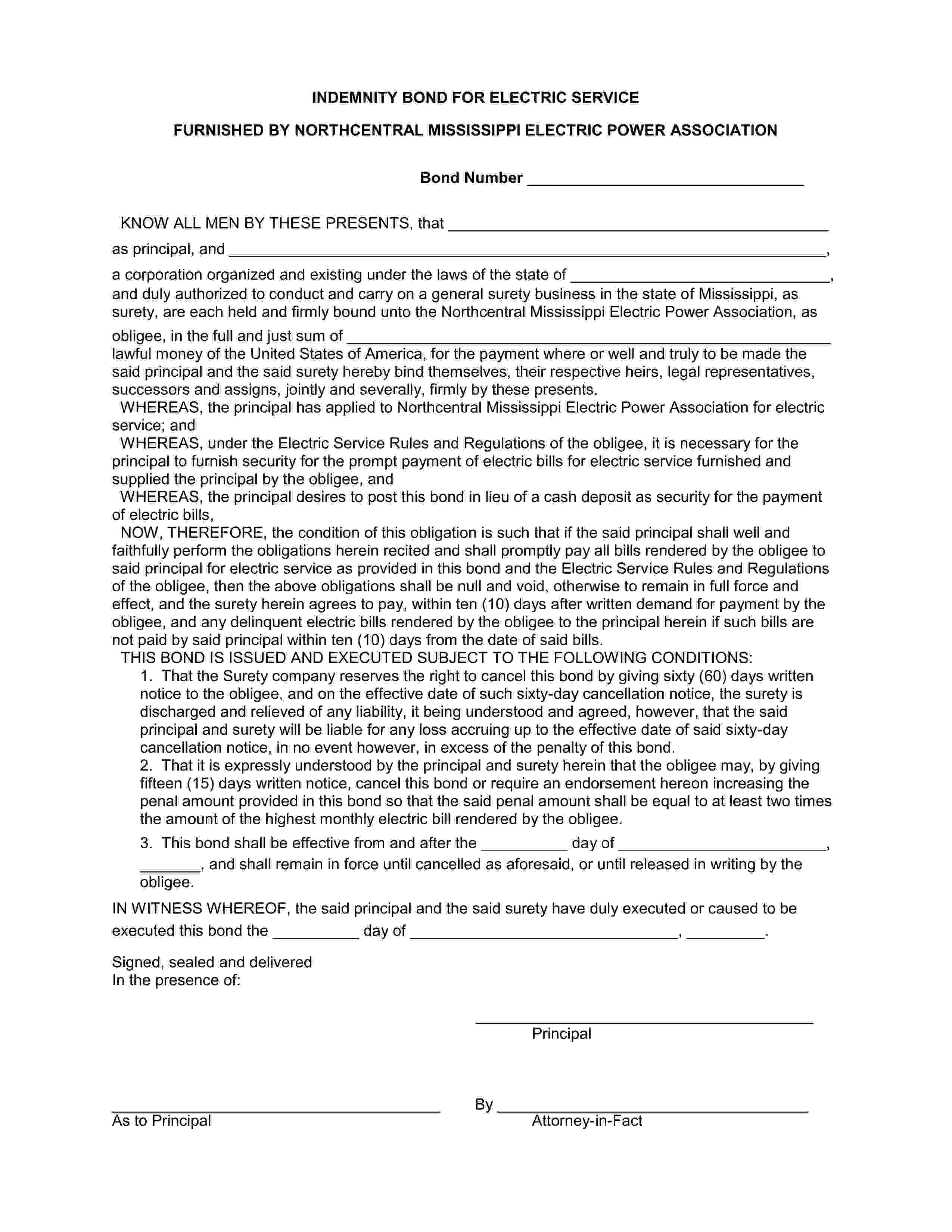 The North Central Electric Power Association Northcentral Mississippi Electric Power Association Utility Deposit Bond starts at $100 plus shipping costs and fees. Fill out the form to buy your bond instantly!