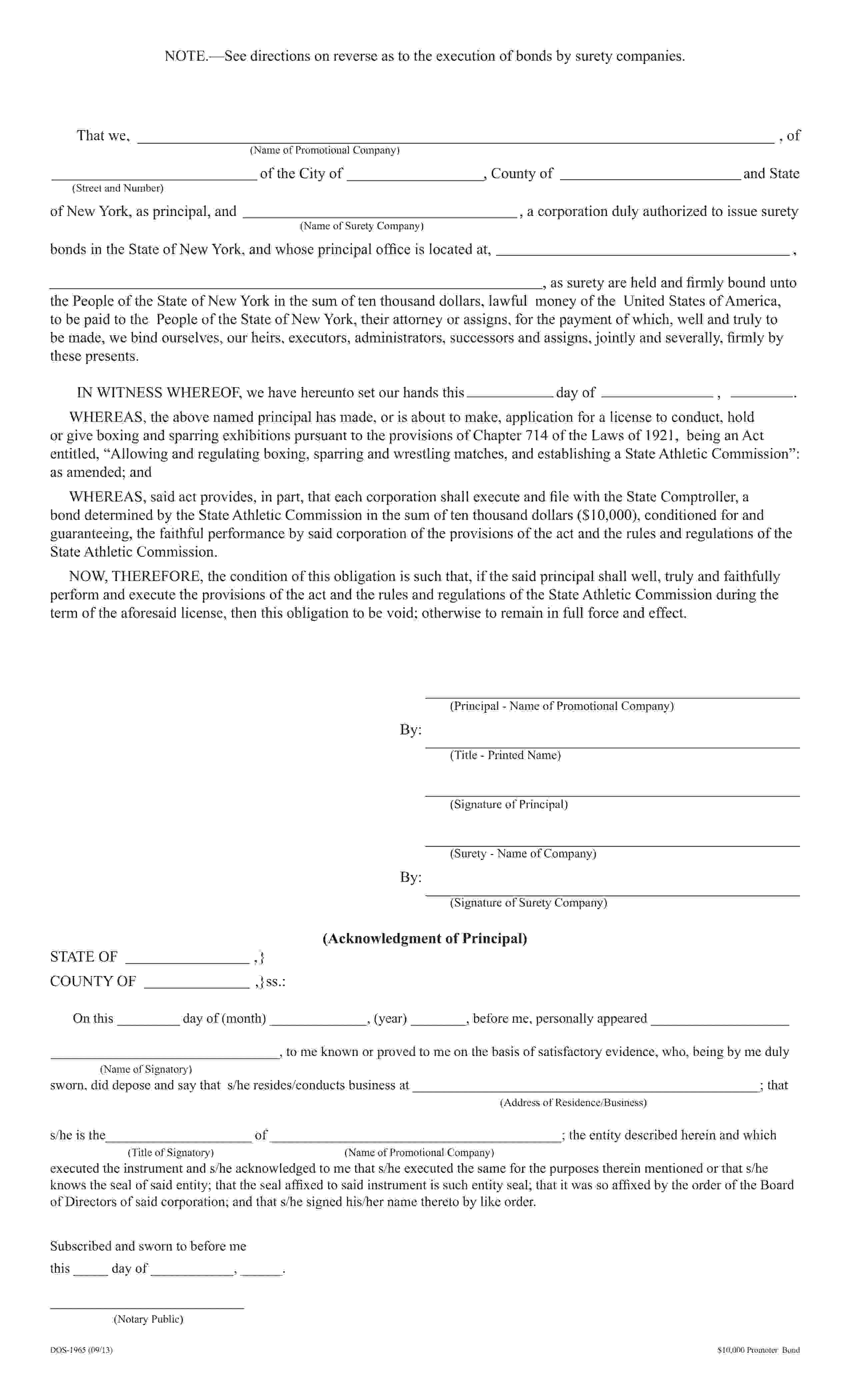 The New York Boxing and Mixed Martial Arts Promoter Bond starts at $100 plus shipping costs and fees. Fill out the form to buy your bond instantly!