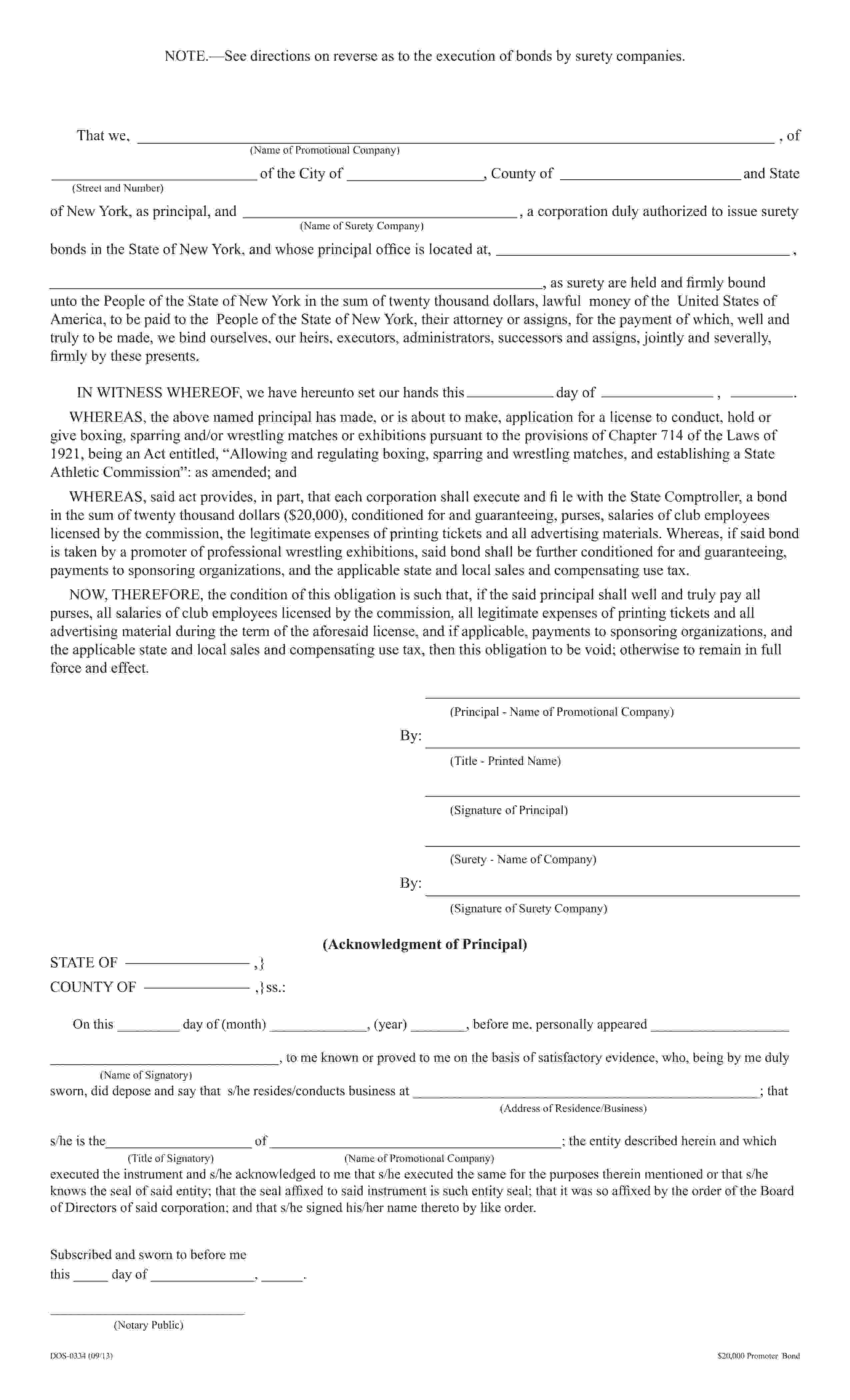 The New York Wrestling Promoter Bond starts at $200 plus shipping costs and fees. Fill out the form to buy your bond instantly!