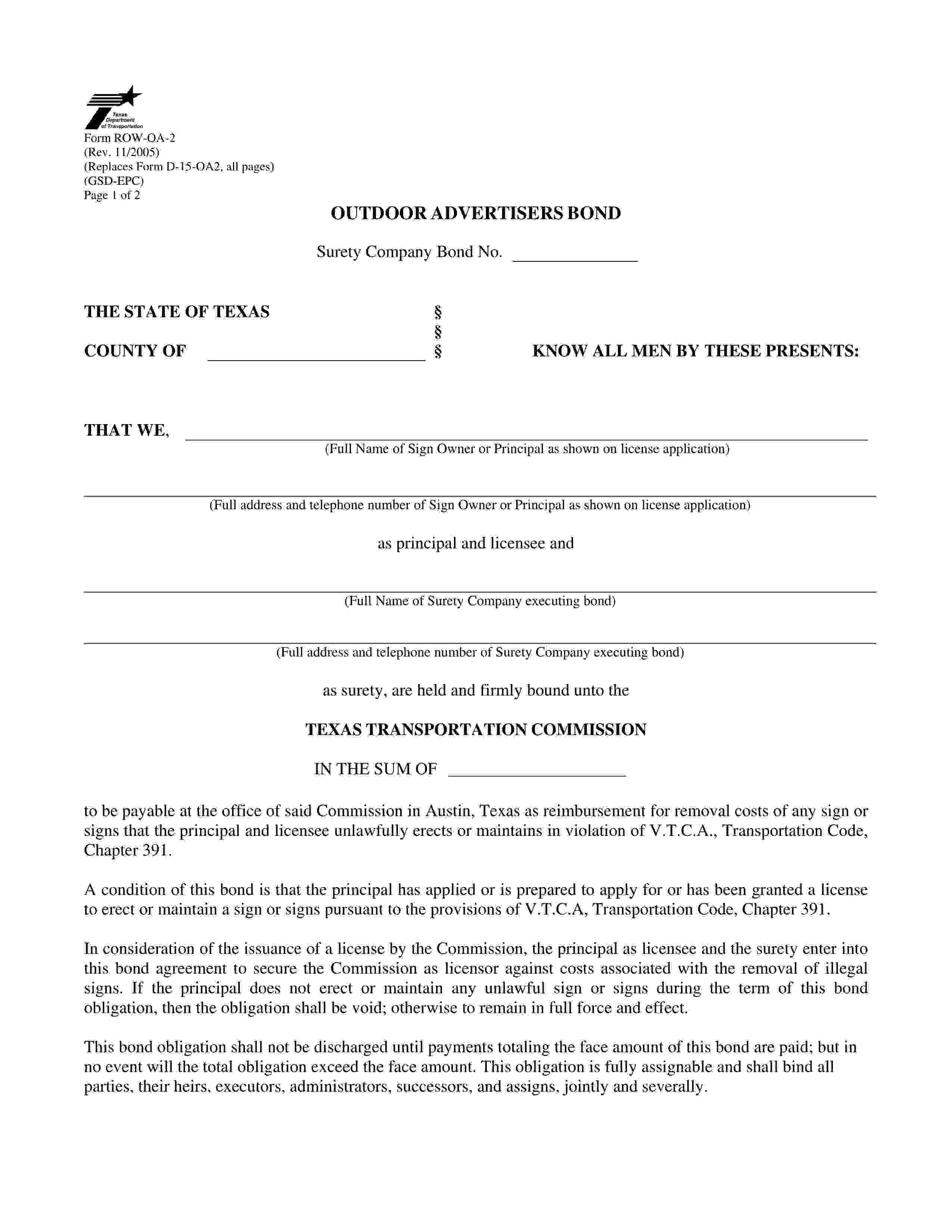 The Texas Commercial Sign Operator Bond starts at $100 plus shipping costs and fees. Fill out the form to buy your bond instantly!